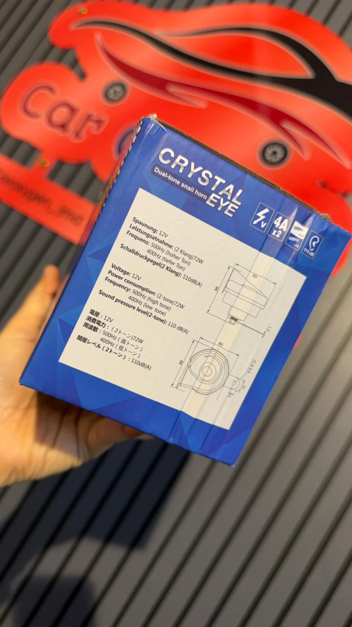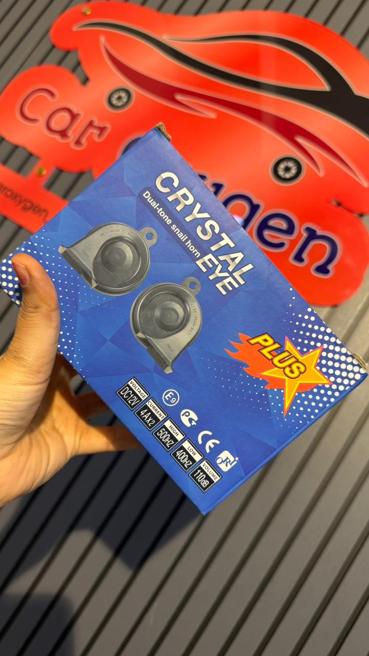 Crystal Eye Dual Tone Snail Horn for Car – 12V DC, 110dB Super Loud, 400Hz/500Hz High & Low Tone (Set of 2)